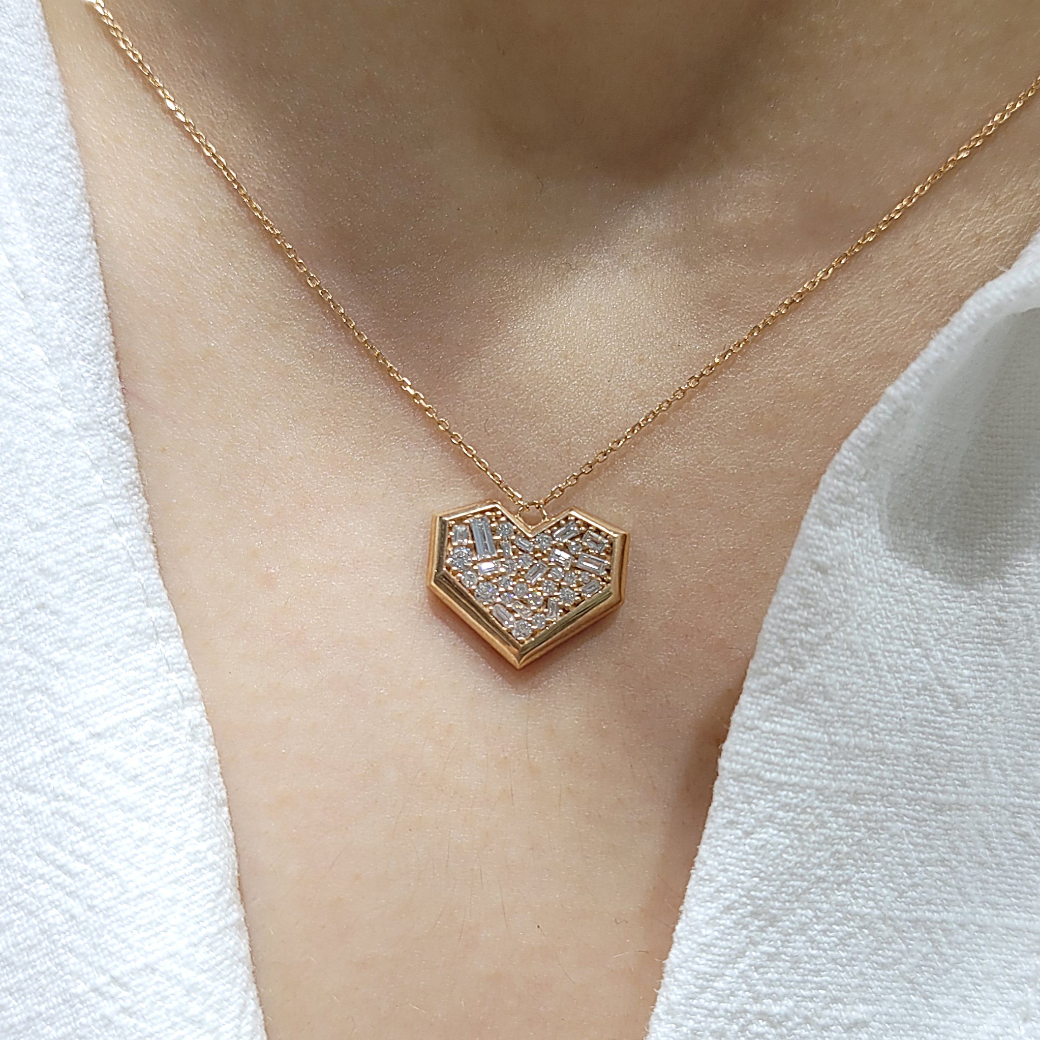 Outlet Pırlanta 0,46 Ct Kalp Baget ve Yuvarlak Kesim Kalp Kolye