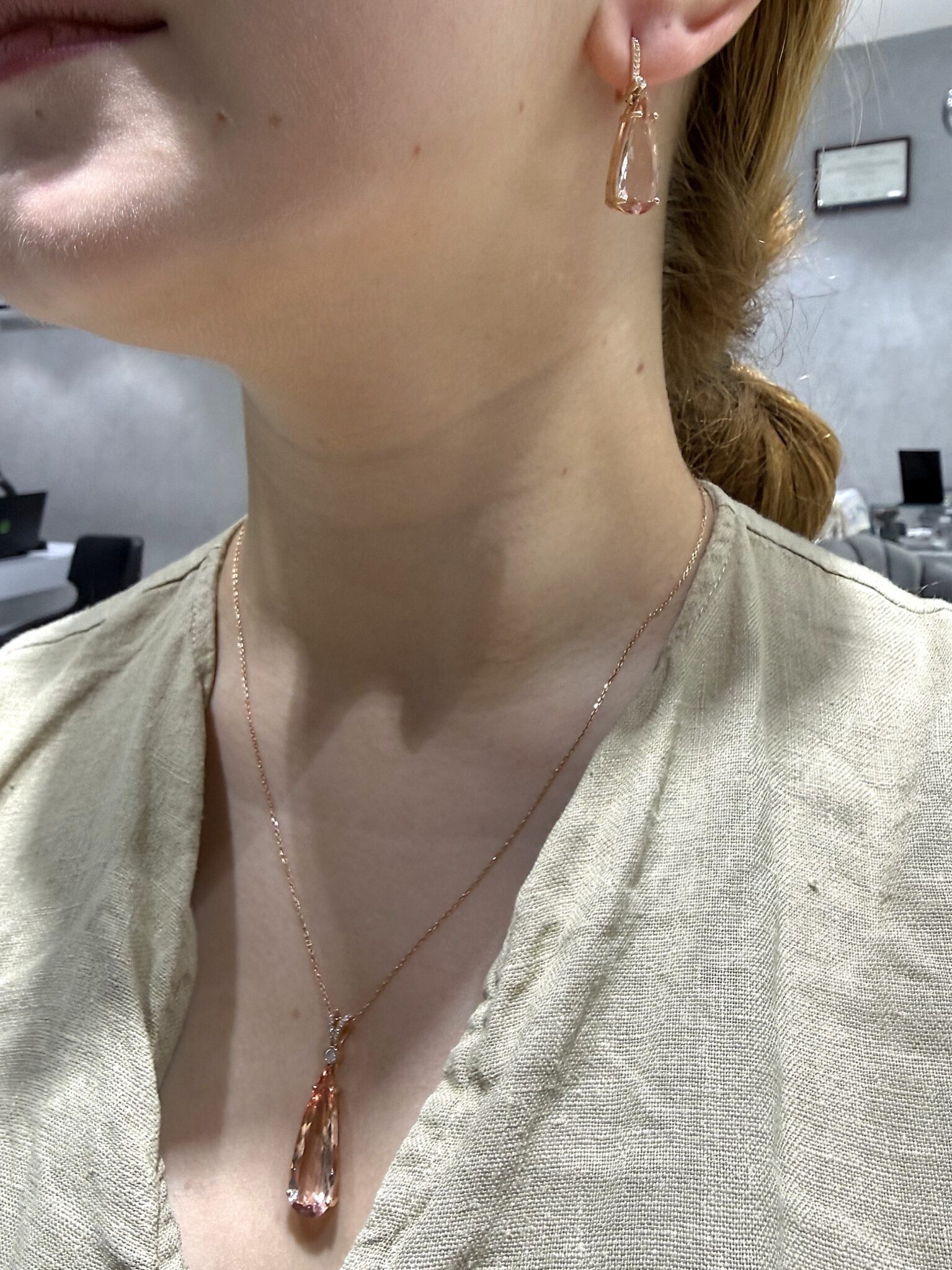 Pırlanta 24,63 Ct Pırlanta & Morganit Kolye-Küpe
